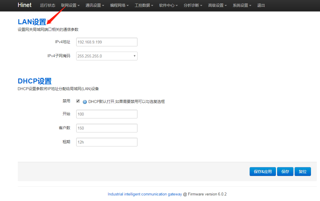 2. 網(wǎng)關(guān)LAN口IP與PLC的IP是否在同一網(wǎng)段,進(jìn)網(wǎng)關(guān)后臺(tái),點(diǎn)擊“通訊設(shè)置 - LAN設(shè)置”,修改網(wǎng)關(guān)LAN口IP,使其與PLC的IP處于同網(wǎng)段。